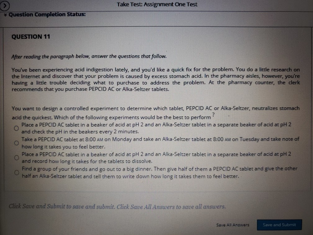 Solved Take Test Assignment One Test Question Completion Chegg Com
