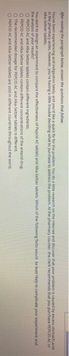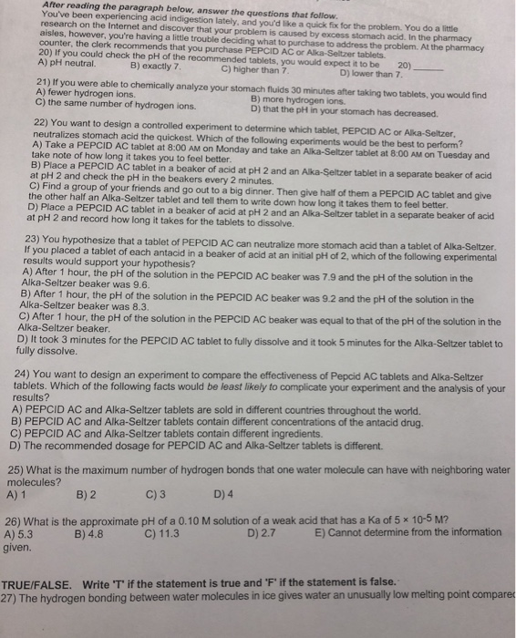 Solved You Ve Been Experiencing Acid Indigestion Lately And Chegg Com